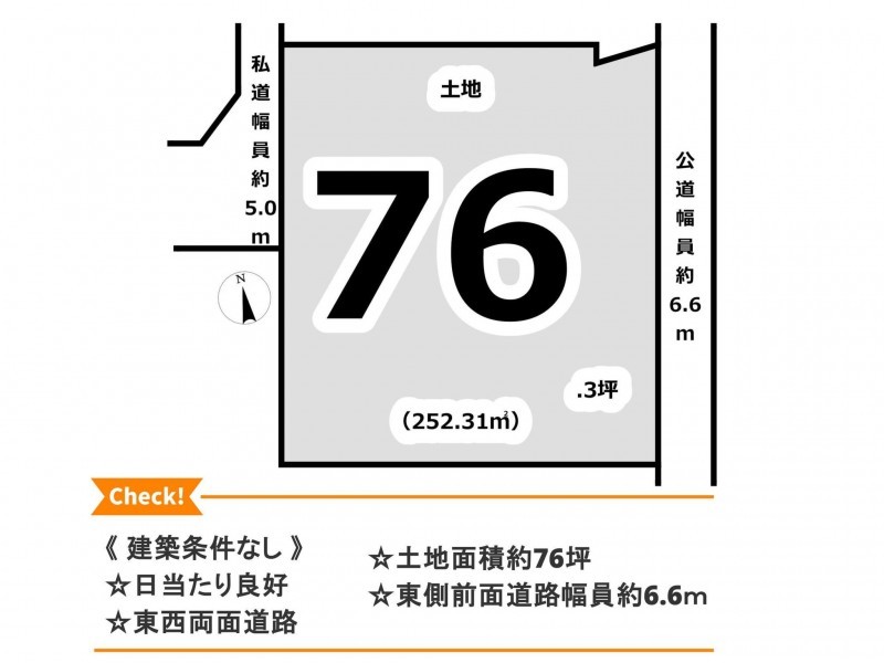 土地面積 | 公簿 252.31㎡(76.32坪) |