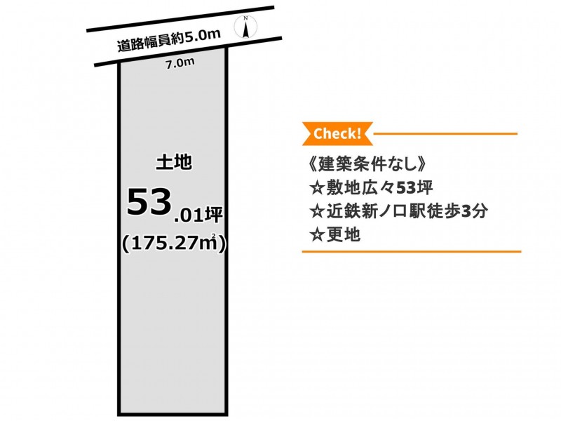 | 接道状況 | 北側 公道5m 間口約7m | ||