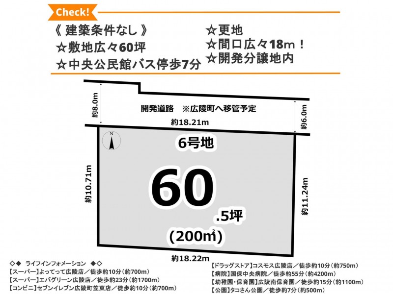 小学校区 広陵東 ( 1100m ) 中学校区 広陵 ( 650m )