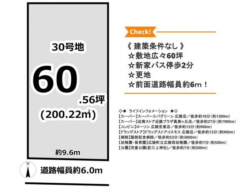 | 接道状況 | 南側6m 間口約9.6m | ||