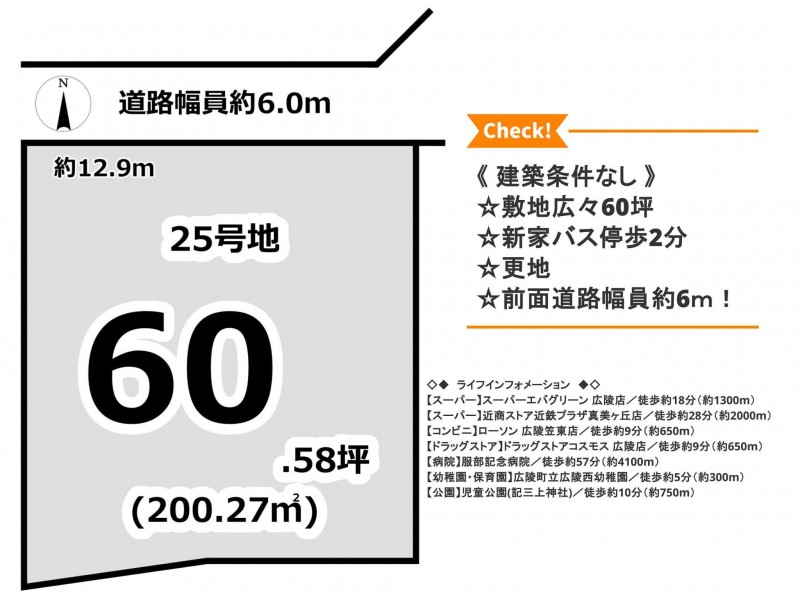 | 接道状況 | 北側6m 間口約12.9m | ||