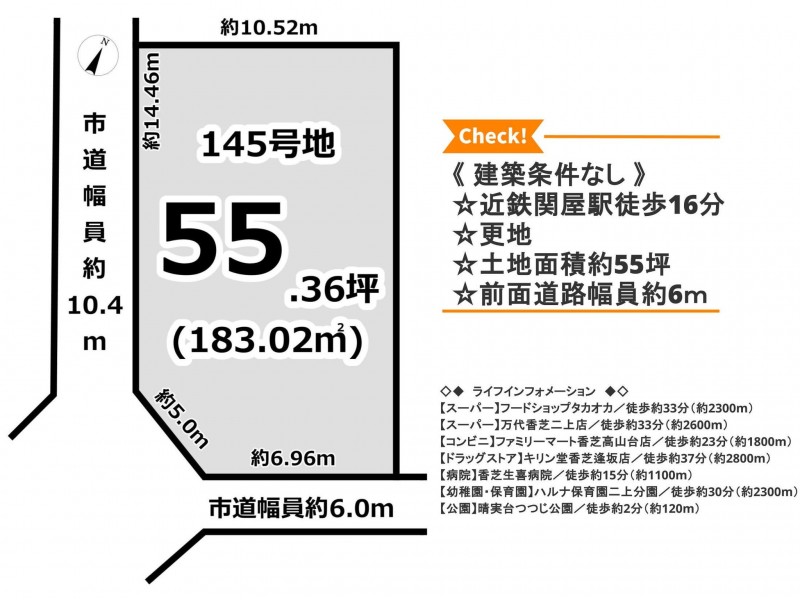 土地面積 | 公簿 183.02㎡(55.36坪) |