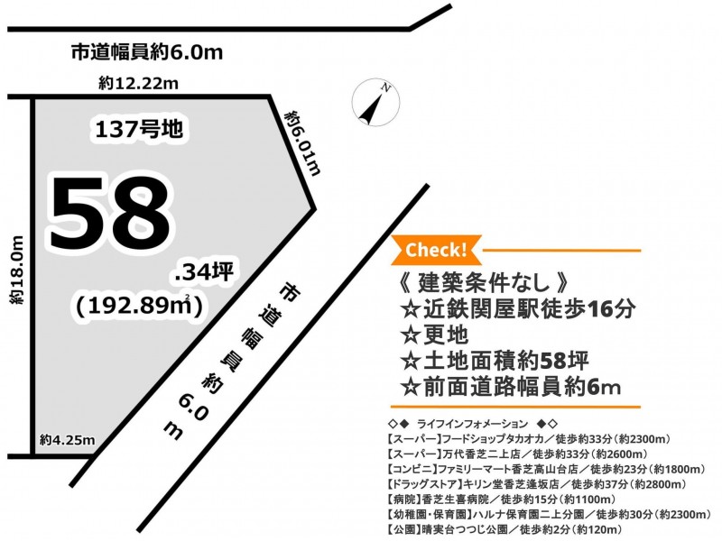 土地面積 | 公簿 192.89㎡(58.34坪) |