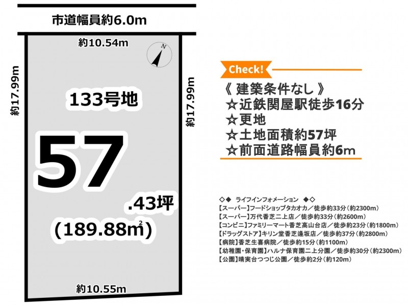 土地面積 | 公簿 189.88㎡(57.43坪) |