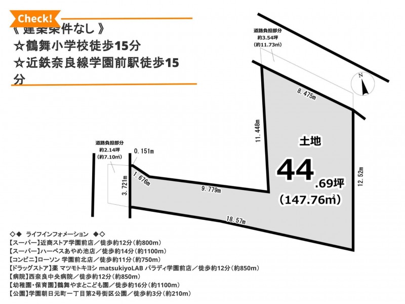小学校区 鶴舞 ( 1200m ) 中学校区 登美ヶ丘 ( 1700m )