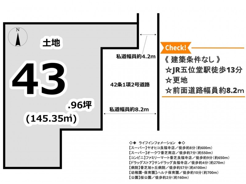接道状況 東側 私道4.2~8.2m 間口約10.8m