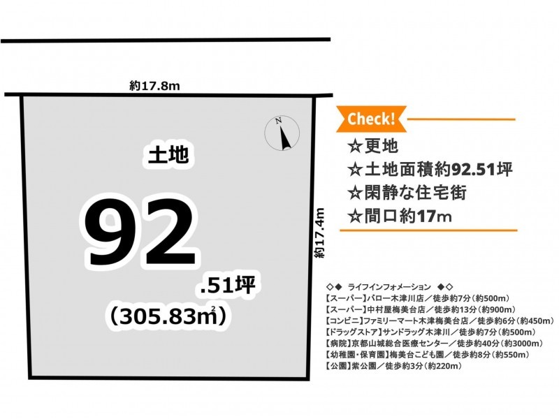 | 小学校区 | 梅美台 ( 350m ) | 中学校区 | 木津南 ( 1200m ) |