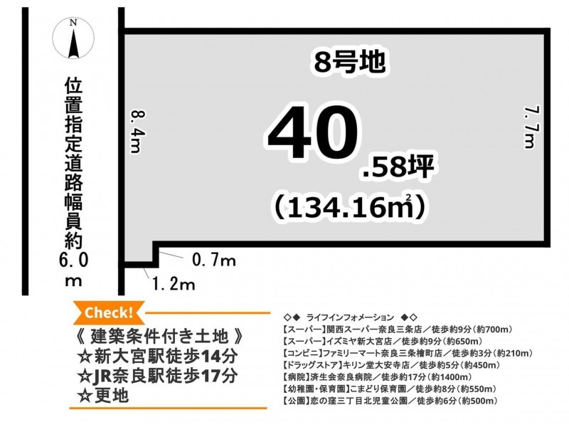 | 接道状況 | 東側6m 間口約8.40m | ||