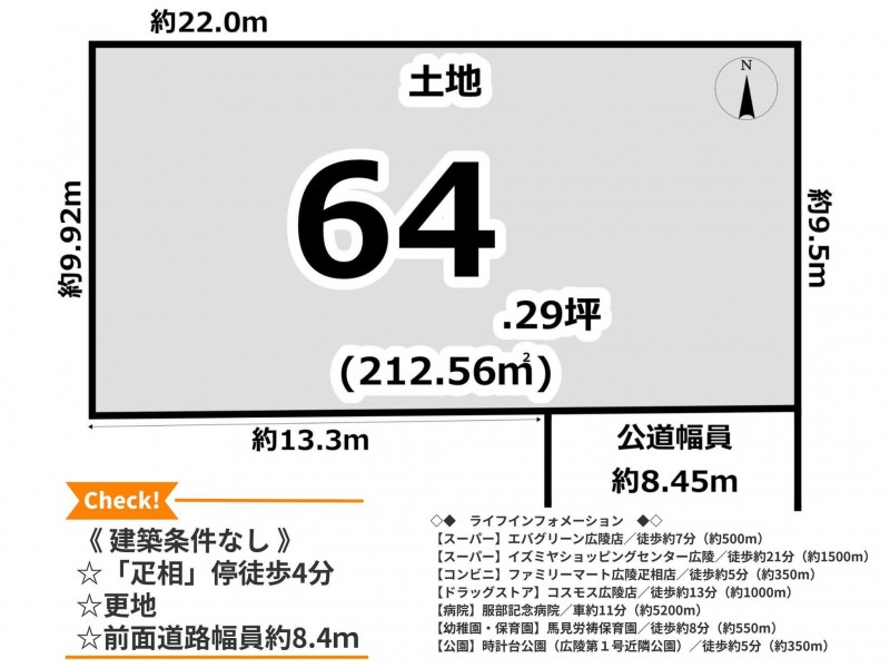 土地面積 公簿 212.56㎡(64.29坪)