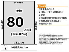 | 接道状況 | 南西側 公道6.2m 間口約14.076m | ||