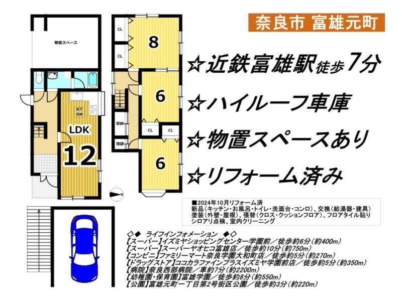 | 備考 | ■2024年10月リフォーム済:新品(キッチン・お風呂・トイレ・洗面台・コンロ)、交換(給湯器・建具)、塗装(外壁・屋根)、張替(クロス・クッションフロア)、フロアタイル貼り、シロアリ点検、室内クリーニング | ||