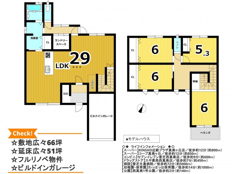 | 設備・条件 | トイレ2箇所、吹抜け、ビルドインガレージ、パントリー、SIC | ||