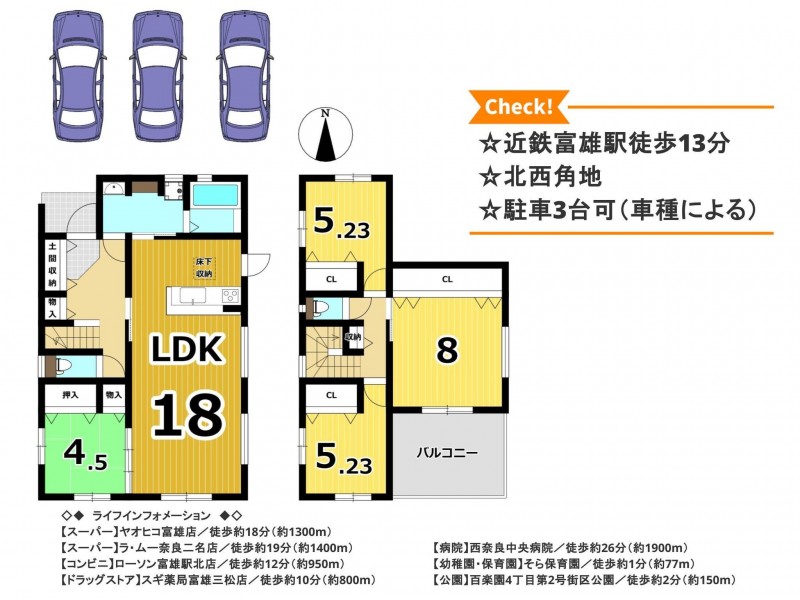 近鉄難波線・奈良線 富雄駅 まで 徒歩13分 近鉄難波線・奈良線 学園前駅 まで 徒歩19分 |