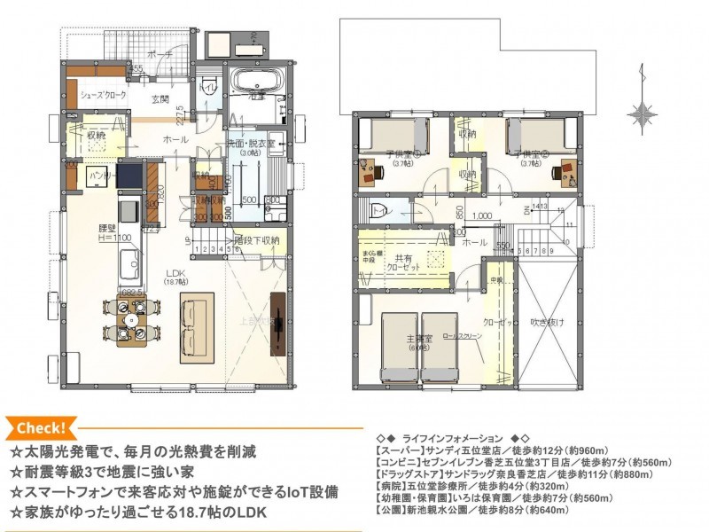 | 設備・条件 | システムキッチン、カウンターキッチン、オール電化、IHクッキングヒーター、洗浄便座、浴室乾燥機、ウォークインクローゼット、駐車場2台分、床下収納、エコキュート、トイレ2箇所 | ||