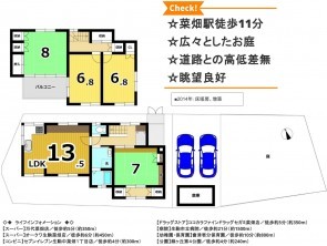| 設備・条件 | 床暖房、システムキッチン、駐車場2台分、カーポート、庭、ワイドバルコニー、電気 | ||