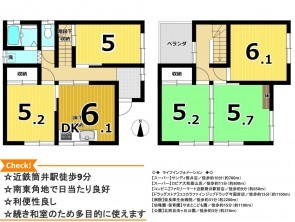 小学校区 筒井 ( 1300m ) 中学校区 郡山南 ( 750m )