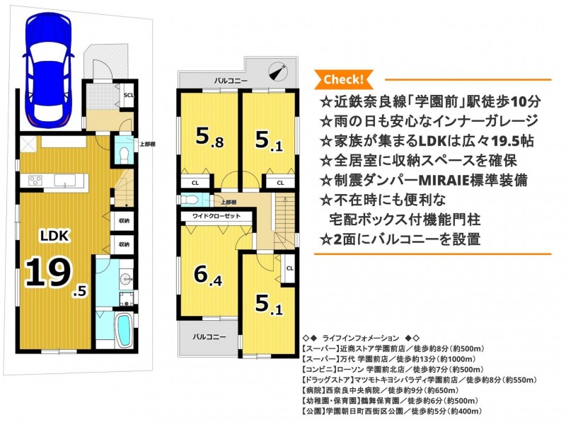 近鉄難波線・奈良線 学園前駅 まで 徒歩10分