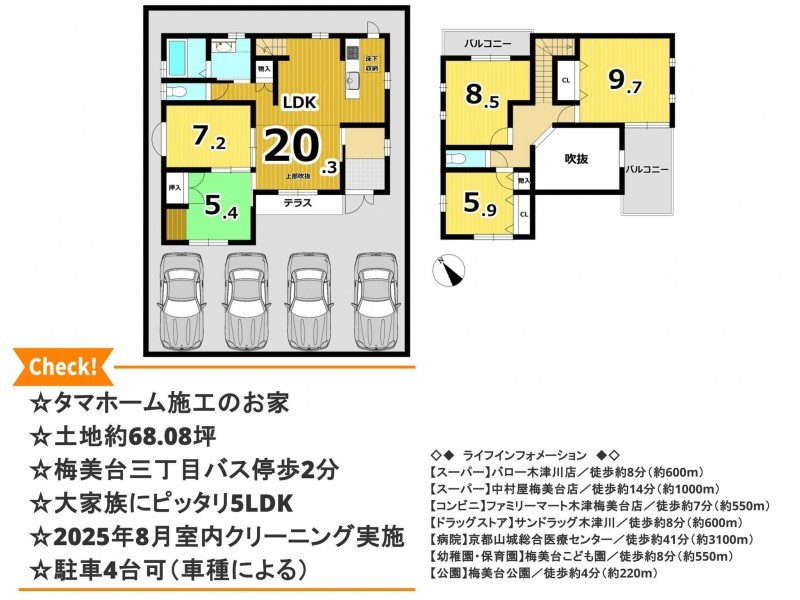近鉄京都線 高の原駅 バス28分乗車 バス停梅美台三丁目 まで 徒歩2分