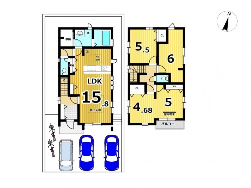 | 間取り | 3(4)LDK+WIC+カースペース3台(軽自動車1台) | 築年数 | 2025年(令和7)12月 |