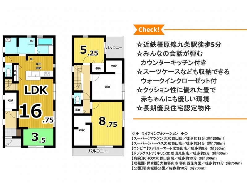 近鉄橿原線 九条駅 まで 徒歩5分 JR関西本線(大和路線) 郡山駅 まで 徒歩19分 まで 徒歩21分 |