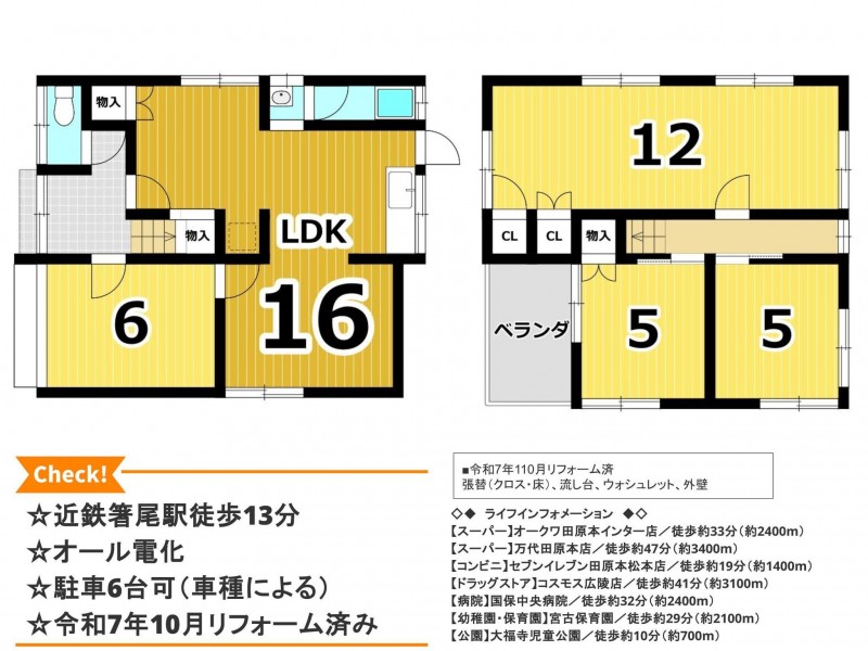 | 備考 | ■令和7年10月リフォーム済:張替(クロス・床)、流し台、ウォシュレット、外壁 | ||