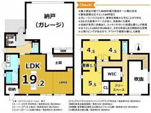 設備・条件 | システムキッチン、食器洗浄乾燥機、オール電化、IHクッキングヒーター、洗浄便座、追い焚き、複層ガラス、ウォークインクローゼット、モニタ付インターホン、1BOX駐車可、駐車場2台分、駐車場3台分、エコキュート、トイレ2箇所、電気、庭、ウッドデッキ、吹抜、土間、室内干し(フリースペース) | ||