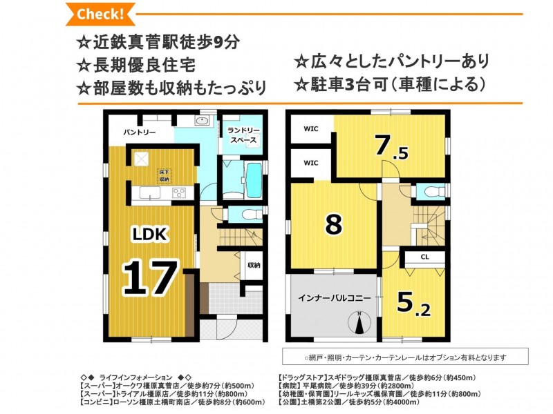 備考 ○網戸・照明・カーテン・カーテンレールはオプション有料となります