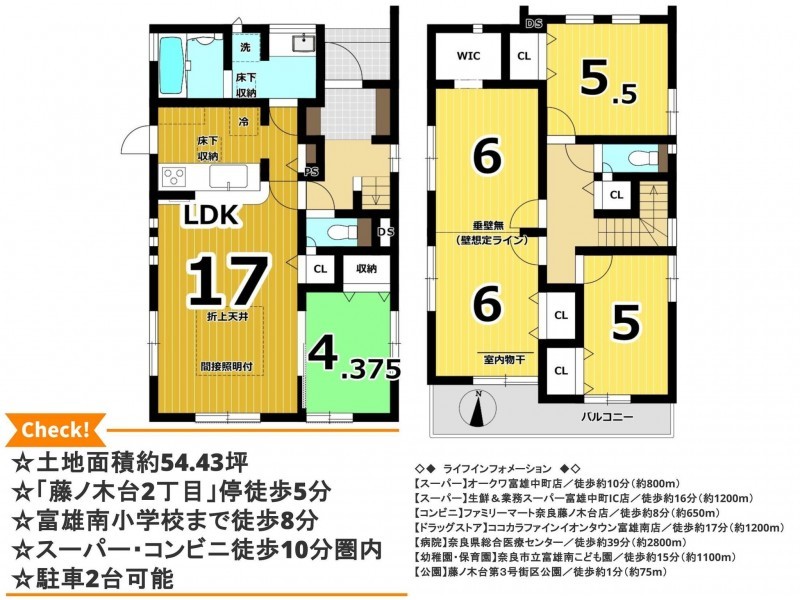 | 土地面積 | 179.95㎡(54.43坪) | 建物面積 | 107.08㎡ (32.39坪) |