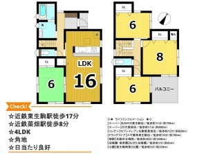 近鉄難波線・奈良線 東生駒駅 まで 徒歩17分 近鉄生駒線 菜畑駅 まで 徒歩8分 |
