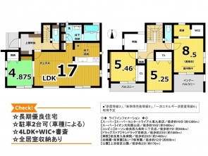 間取り 4LDK+WIC+書斎+カースペース2台 築年数 2025年(令和7)11月 完成予定