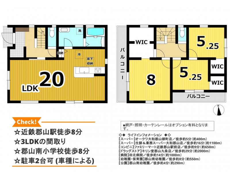 備考 ■網戸・照明・カーテンレール:オプション有料