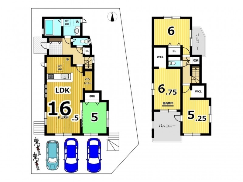 | 間取り | 4LDK+2WIC+カースペース3台 (軽自動車1台) | 築年数 | 2025年(令和7)12月 |