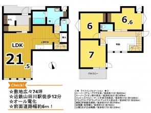 | 設備・条件 | 側溝、オール電化、トイレ2箇所、上水道、下水道 | ||