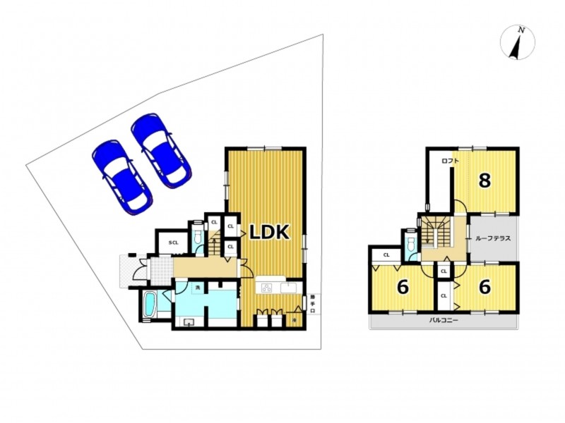 設備・条件 ロフト、駐車場2台分、屋根裏収納10帖、ルーフテラス