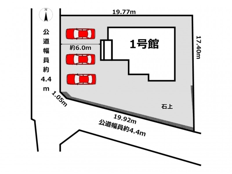 西側 公道4.4m 間口約11.4m 南側 公道4.4m 間口約19.9m |