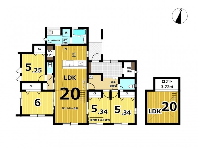 | 設備・条件 | システムキッチン、カウンターキッチン、食器洗浄乾燥機、シャンプードレッサー、洗浄便座、追い焚き、複層ガラス、ロフト、モニタ付インターホン、駐車場2台分、駐車場3台分、床下収納、トイレ2箇所、電気, 浄水器, 土間収納, パントリー, 給湯, 火災警報器等設置済, BELS/省エネ基準適合認定 | ||