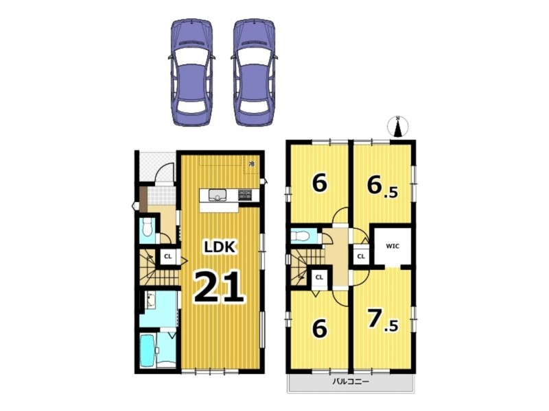 | 設備・条件 | 側溝、システムキッチン、カウンターキッチン、食器洗浄乾燥機、オール電化、浴室乾燥機、ウォークインクローゼット、駐車場2台分、トイレ2箇所 | ||