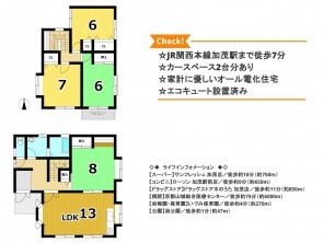 JR関西本線加茂駅徒歩7分・駐車場2台可の4LDK