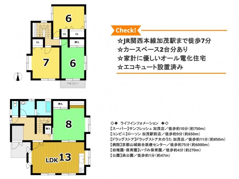| 設備・条件 | オール電化、洗浄便座、駐車場2台分、エコキュート | ||