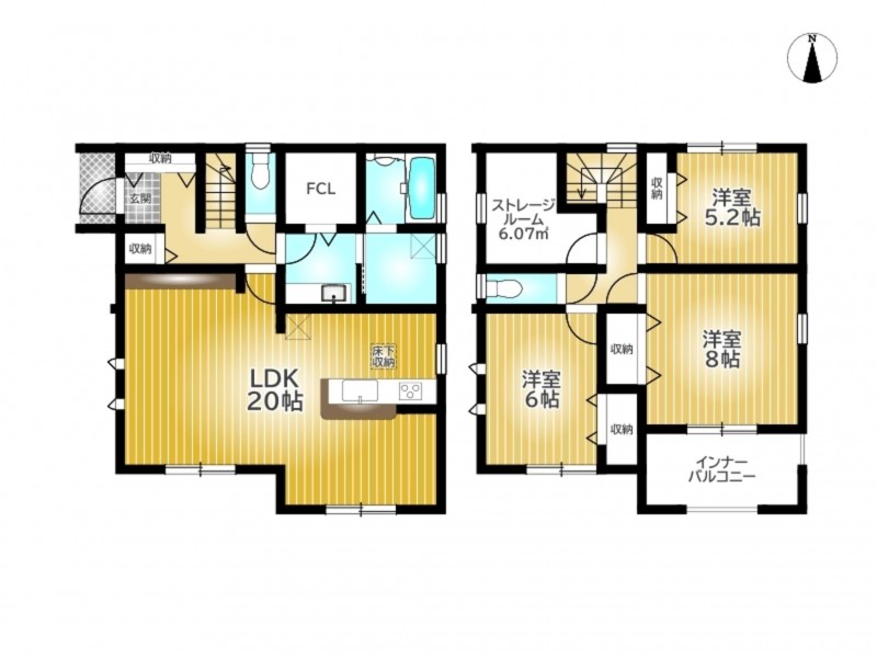 | 設備・条件 | カウンターキッチン、オール電化、シャンプードレッサー、洗浄便座、浴室乾燥機、モニタ付インターホン、駐車場2台分、床下収納、トイレ2箇所、電気、ファミリークローゼット、ランドリールーム、ストレージルーム、人感センサー、浄水器 | ||