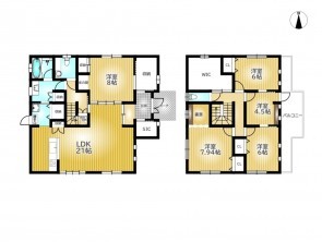 | 設備・条件 | カウンターキッチン、ウォークインクローゼット、トイレ2箇所、電気、上水道、下水道、シャッター付倉庫、庭、シューズインクローク、書斎 | ||