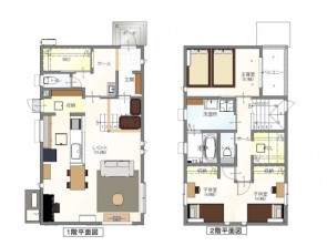 | 設備・条件 | システムキッチン、カウンターキッチン、オール電化、複層ガラス、ウォークインクローゼット、駐車場2台分、床下収納、トイレ2箇所 | ||