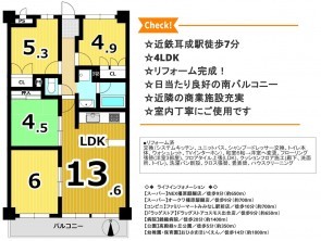 備考 | ■リフォーム済:交換(システムキッチン、ユニットバス、シャンプードレッサー交換、トイレ本体、ウォシュレット、TVインターホン)、和室6帖→洋室へ変更、フローリング張替(洋室3部屋)、フロアタイル上張(LDK)、クッションフロア施工(廊下、洗面所、トイレ)、洗濯パン新設、クロス張替、畳表替、ハウスクリーニング |