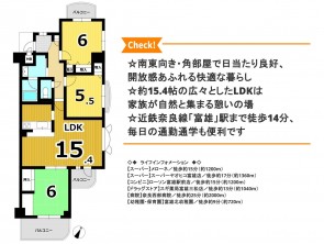 ☆近鉄奈良線「富雄」駅まで徒歩14分、毎日の通勤通学も便利です