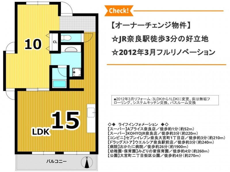 ☆2012年3月に室内をフルリノベーションしており、こだわりの無垢材フローリングや機能的なシステムキッチンが魅力です。