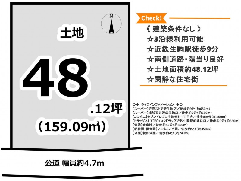 ☆3沿線利用可能な「生駒」駅まで徒歩9分で通勤通学に便利