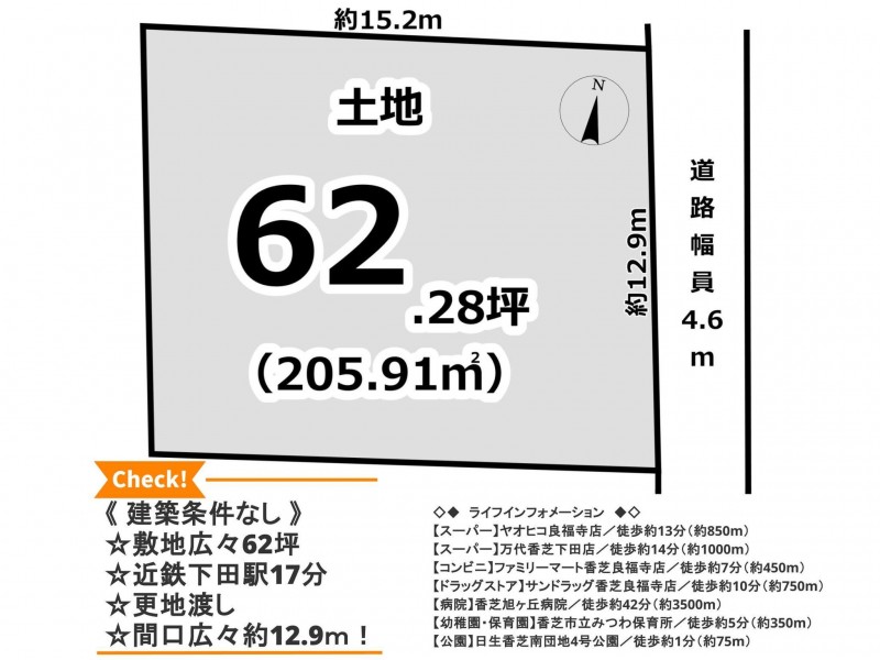 接道状況 | 東側 公道4.6m 間口約12.9m | ||