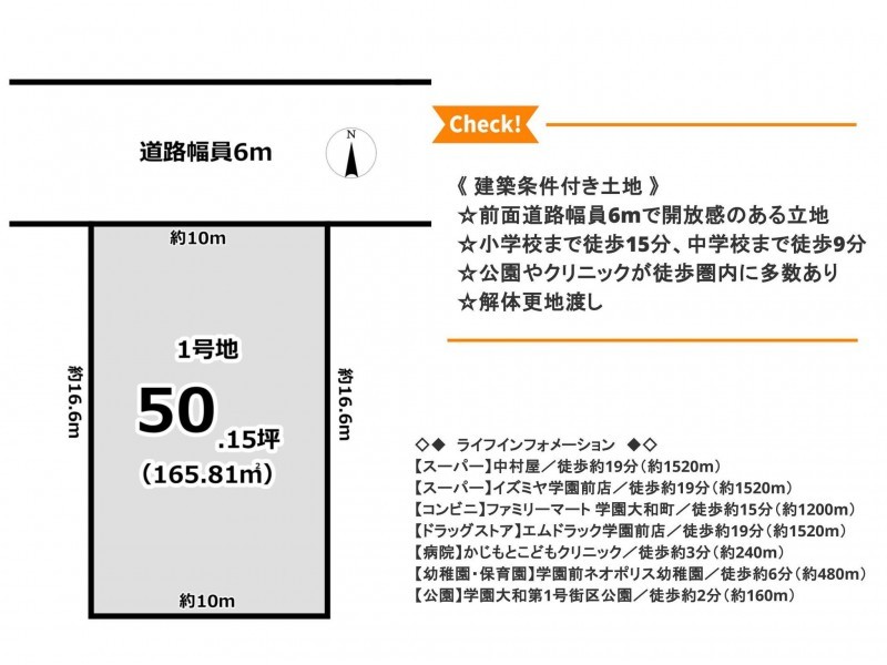 | 接道状況 | 北側 公道6m 間口約10m | ||