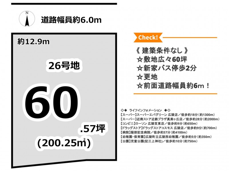| 接道状況 | 北側6m 間口約12.9m | ||
