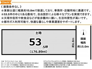 ☆東側公道に幅員約15.0mで接道しており、事務所・店舗用地に最適です。